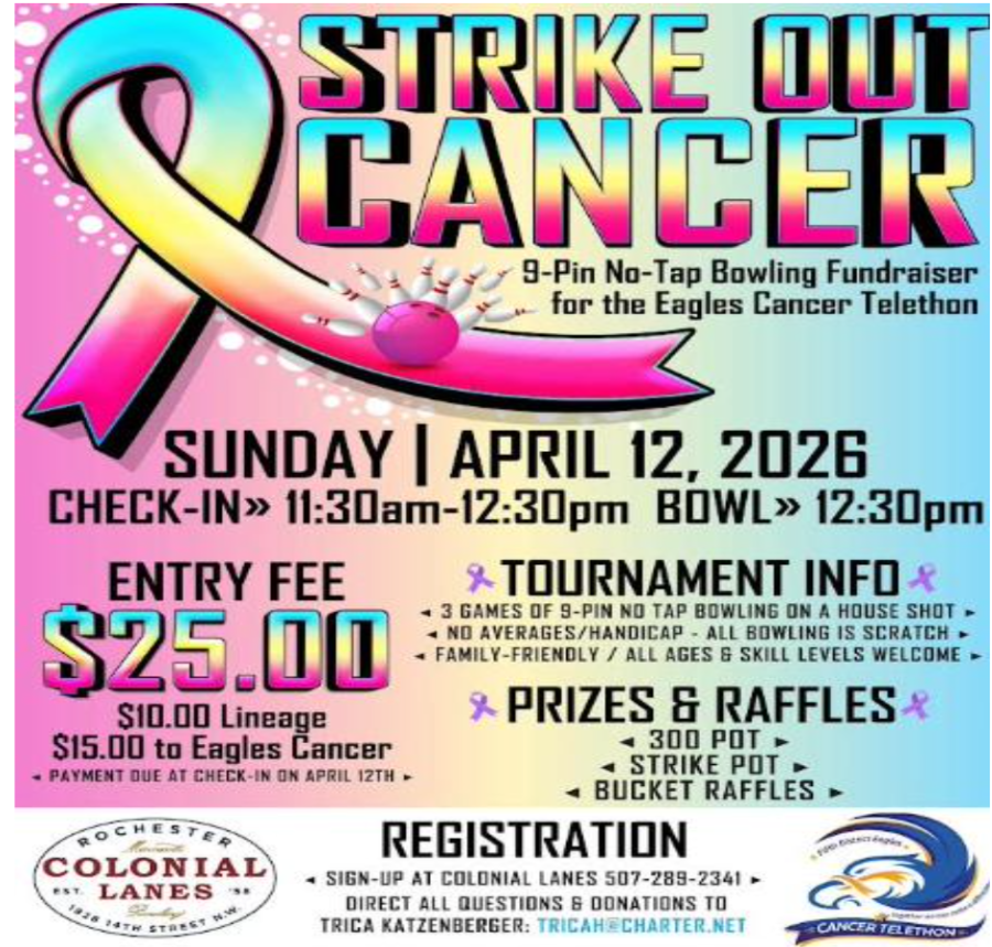 Fundraisers are conducted for eight major charities, including kidney, heart, diabetes, cancer and spinal cord injury funds, a children's fund, memorial foundation and the Golden Eagle Fund.