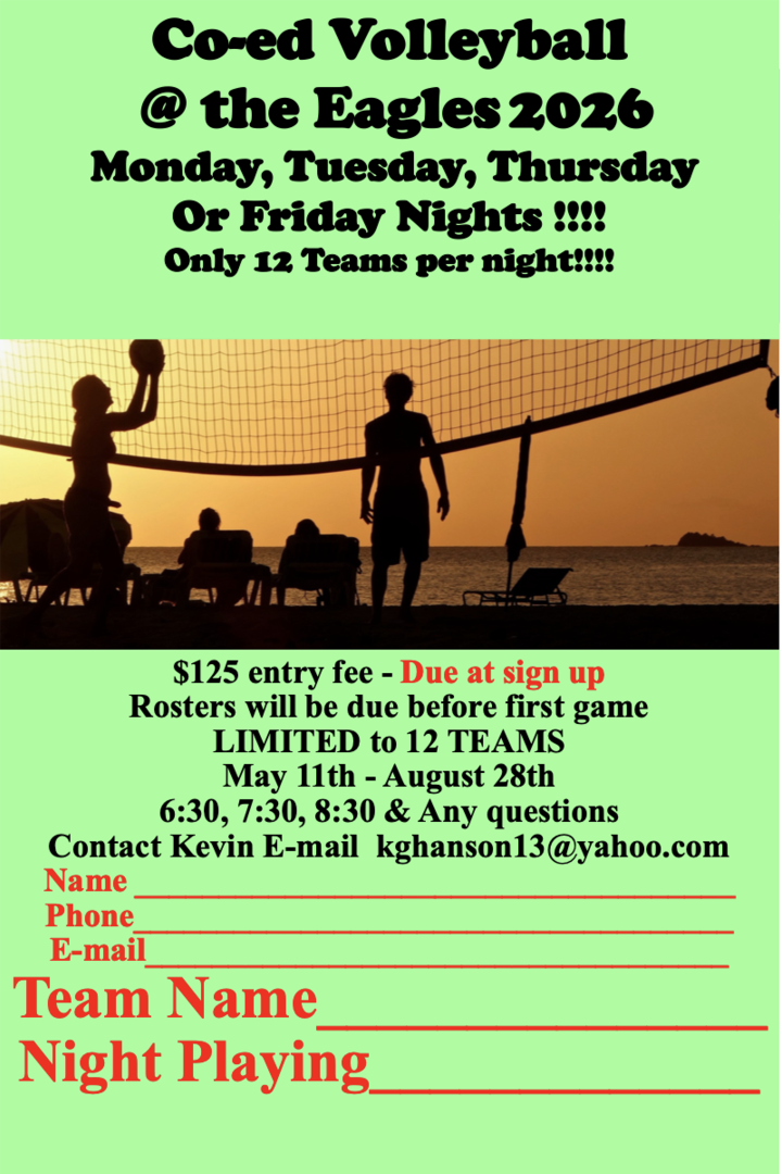 - Reference the Eagles website at www.rochestermneaglesclub.com for schedules, and cancelations. Games will not be made up if the night is cancelled.